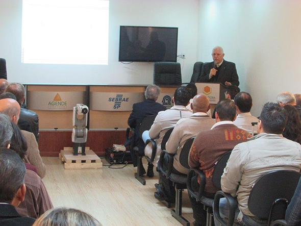 Representantes da empresa de automação Nachi também estiveram presentes e fizeram uma abordagem mais aprofundada sobre o processo de automação, seguido pela demonstração do robô industrial desenvolvido pela empresa.
